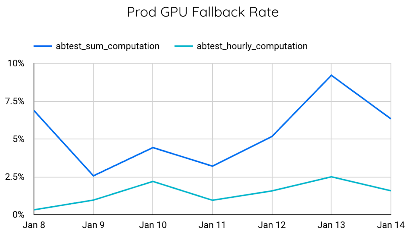 The long-term vision was compelling: a platform where jobs could seamlessly run on GPUs when capacity was available, and automatically fall back to a CPU-based architecture otherwise. For the AB pipeline, this unlocked access to large amounts of stable GPU capacity without requiring additional infrastructure work.