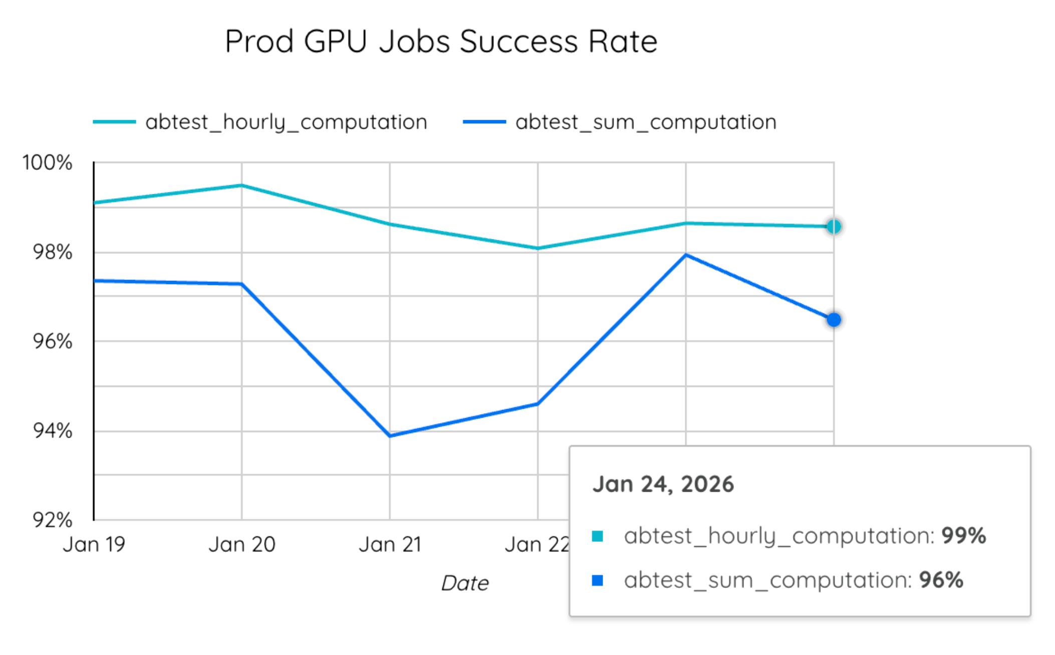 From an operational standpoint, the system has been stable. GPU job success rates typically fall between 96% and 98% day-over-day.